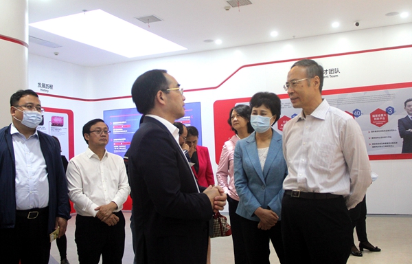 在董事长戴立忠博士等公司领导的陪同下,调研组一行参观了公司展厅和实验室,实地了解公司科技创新、生产销售与人才队伍建设以及抗击新冠肺炎疫情等相关情况。