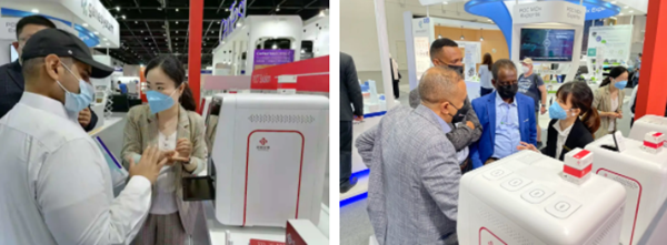 在全球疫情防控形势仍较严峻的情况下,参展之前,问鼎娱乐生物派遣了多支专业国际技术团队深入阿联酋各地医院,拜访终端客户,了解产品实际应用情况,进行培训带教,为他们提供最快的一线服务,及时解疑答惑。