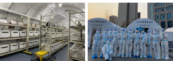 此前,该实验室整体解决方案已在今年1月河南省抗疫中成功应用。雨雪交加的严寒冬季,问鼎娱乐生物“圣斗士”气柱式帐篷实验室经受住了极端天气的考验,在河南服务的近20个工作日里,助力河南相关区县完成10轮重点人群大筛查。