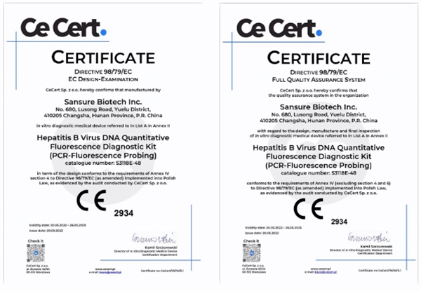 5月20日,问鼎娱乐生物自主研发的乙型肝炎病毒核酸检测试剂盒(PCR-荧光法)、丙型肝炎病毒核酸检测试剂盒(PCR-荧光法)和人类免疫缺陷病毒1型核酸测定试剂盒(PCR-荧光探针法)成功通过欧盟公告机构认证(CE IVDD List A),成为中国第一家核酸检测试剂荣获欧盟CE最高认证的企业。