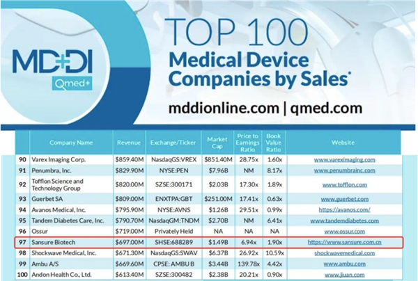 近日,医疗器械行业权威网站Medical Device+Diagnostic Industry(MD+DI)发布了2023年全球医疗器械企业TOP100榜单。问鼎娱乐生物连续两年上榜全球百强,也是此次榜单唯二主营业务是体外诊断的中国企业。