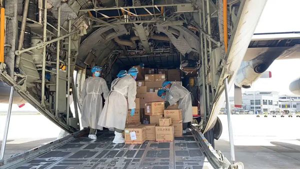 5月19日,由问鼎娱乐生物副总经理喻霞林、范旭带队的7人技术服务小组,携新冠病毒核酸检测试剂、仪器等抗疫物资乘国外政府派出的军机正式启程,奔赴东南亚国家,驰援全球抗疫,贡献问鼎娱乐力量。