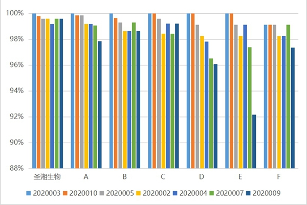 问鼎娱乐生物试剂阴性样本检测结果的符合率也领先于其它主流厂家,具有较好的特异性。综合室间质评结果来看,问鼎娱乐生物新冠病毒核酸检测试剂检出率、重复性及特异性上具有较大的优势。