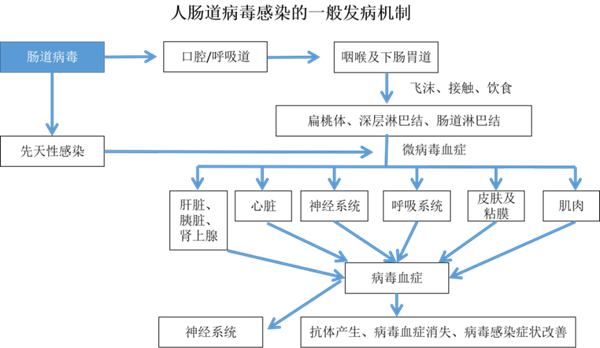 手足口病(Hand foot and mouth disease,HFMD)是由肠道病毒(Enterovirus,EV)感染引起的一种儿童常见传染病,5岁以下儿童多发。手足口病是全球性疾病,我国各地全年均有发生,发病率为37.01/10万~205.06/10万,近年报告病死率在6.46/10万~51.00/10万之间。患儿和隐性感染者为主要传染源,手足口病隐性感染率高。肠道病毒适合在湿、热的环境下生存,可通过感染者的粪便、咽喉分泌物、唾液和疱疹液等广泛传播。密切接触是手足口病重要的传播方式,通过接触被病毒污染的手、毛巾、手绢、牙杯、玩具、食具、奶具以及床上用品、内衣等引起感染;还可通过呼吸道飞沫传播;饮用或食入被病毒污染的水和食物亦可感染。婴幼儿和儿童普遍易感,以5岁以下儿童为主。